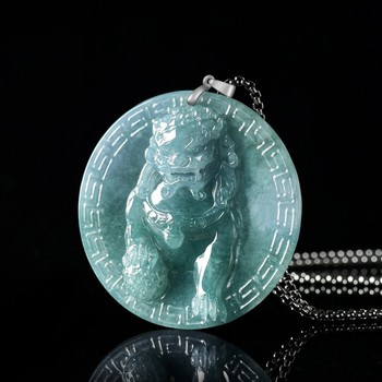 Colgante de Jadeíta Natural Azul Agua con Diseño de Perro Fu, Plata S925, Estilo Tradicional Chino, con Certificado de Tasación D162