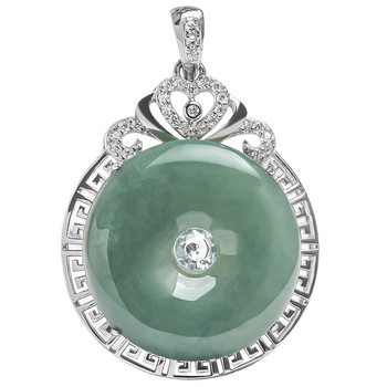Natural Myanmar Jadeite Ping an Buckle Pendant S925 Silver Inlay Fashion Female Accessories Give Appraisal Certificate D076