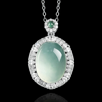 Tự Nhiên Jadeite Màu Xanh Nước Cabochon Ngọc Bích Mặt Dây Chuyền S925 Bạc Đồ Trang Sức Mỹ Của Phụ Nữ Đồ Trang Sức Cho Thẩm Định Giấy Chứng Nhận D796
