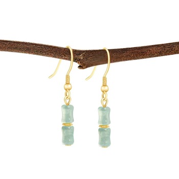 Tự Nhiên Jadeite Màu Xanh Nước Tre Ngọc Hoa Tai S925 Bạc Của Phụ Nữ Đồ Trang Sức Quà Tặng Của Thẩm Định Giấy Chứng Nhận D486